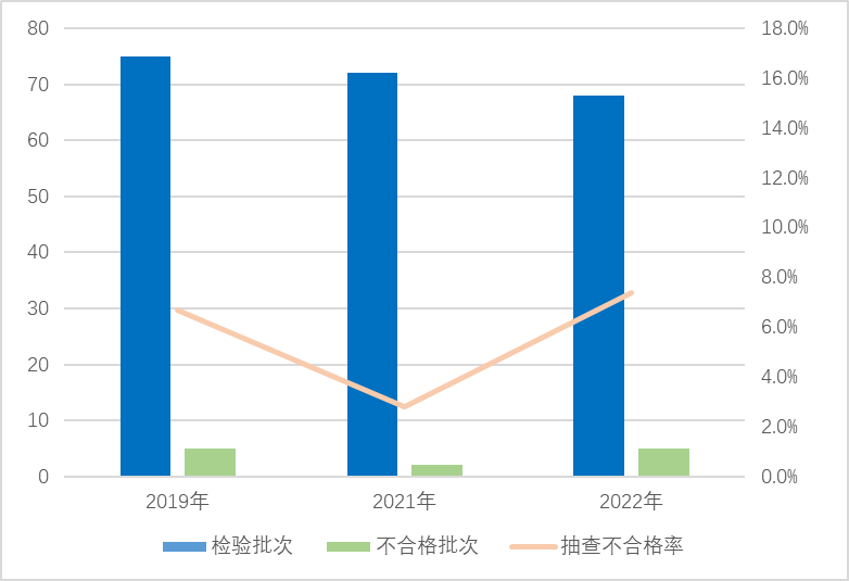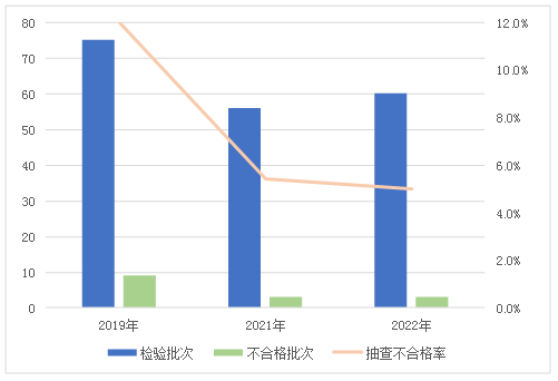 圖5 危險化學(xué)品包裝物產(chǎn)品近3年國家監(jiān)督抽查情況