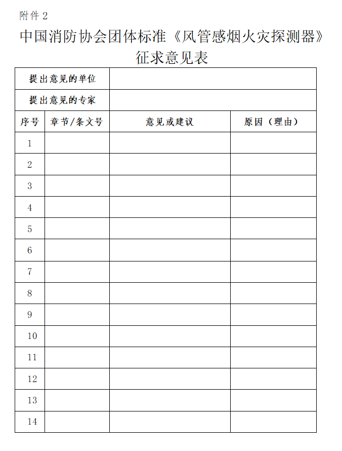 2.中國(guó)消防協(xié)會(huì)團(tuán)體標(biāo)準(zhǔn)征求意見表