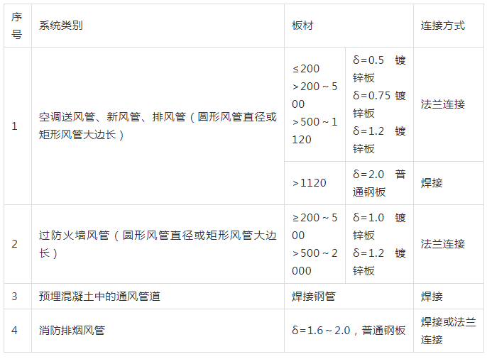 2、風(fēng)管法蘭墊料按系統(tǒng)進(jìn)行選用??照{(diào)、通風(fēng)風(fēng)管采用厚度為3mm的8501密封膠帶密封,排煙系統(tǒng)風(fēng)管采用石棉橡膠板作為法蘭墊料。