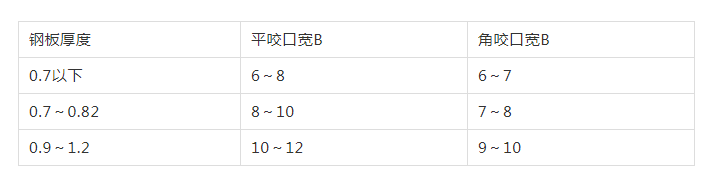 9、風(fēng)管的咬口形式做如下選擇:矩形風(fēng)管或配件的四角組合采用聯(lián)合角咬口。咬口寬度和留量根據(jù)板材厚度定,具體尺寸見下表: