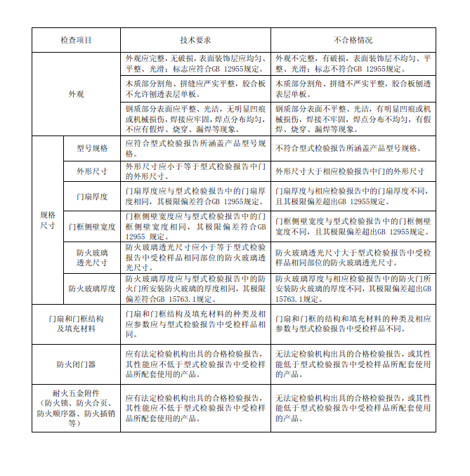 防火門(mén) 技術(shù)要求和不合格判定