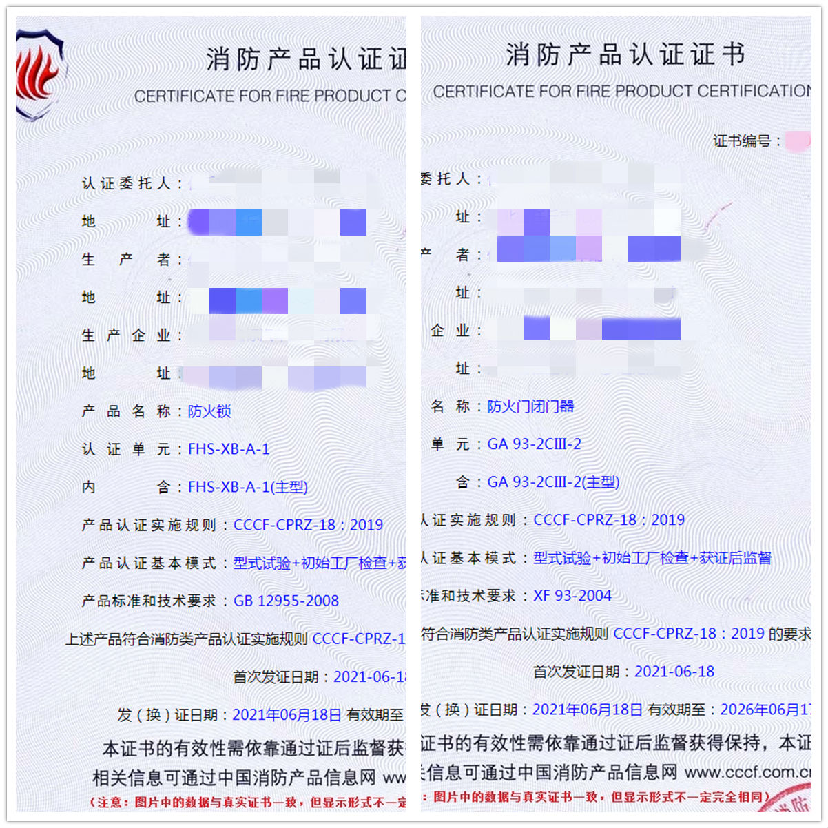 祝賀我司任丘區(qū)客戶申請(qǐng)的(防火鎖、防火門閉門器)已于2021年6月18號(hào)獲證,同祝企業(yè)生意興隆,財(cái)源滾滾。
