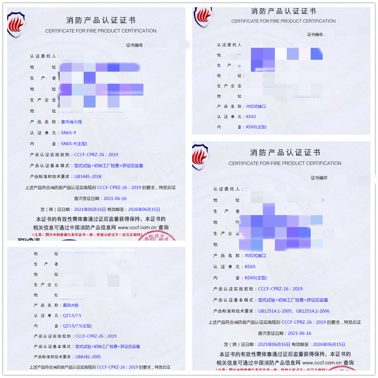 祝賀我司陜西地區(qū)客戶申請(qǐng)的(室內(nèi)消火栓、內(nèi)扣式接口、直流水槍)已于2021年6月16號(hào)獲證,同祝企業(yè)生意興隆,財(cái)源滾滾。